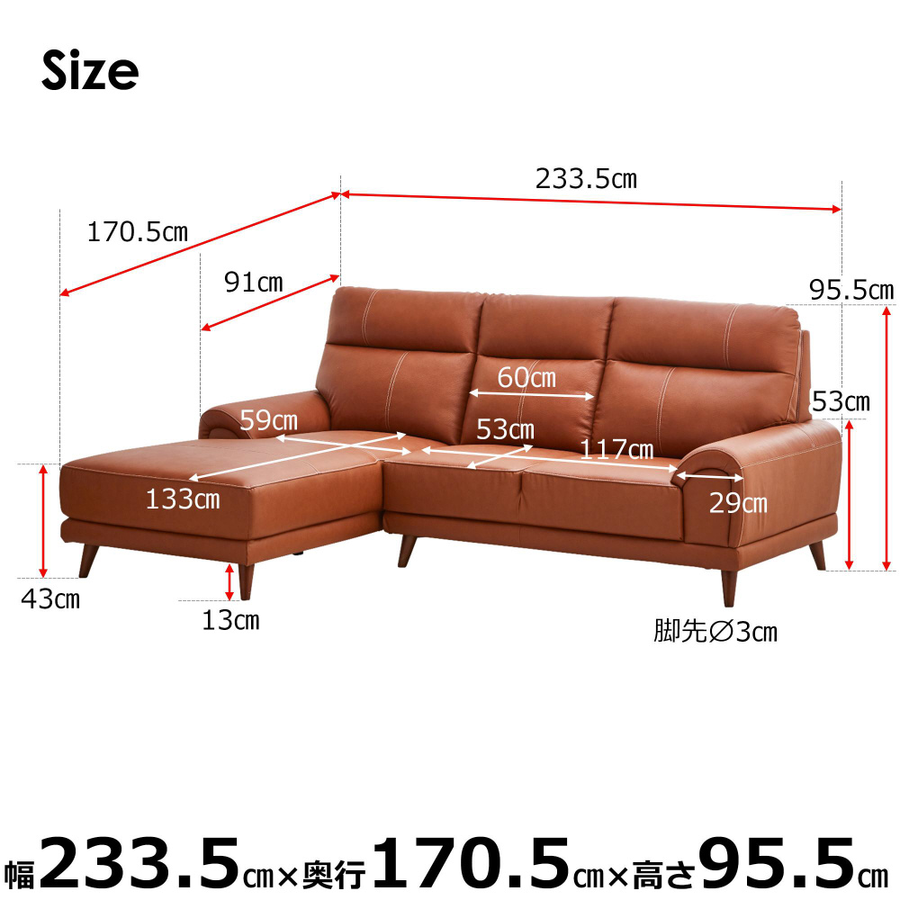 右カウチソファ プリバ 本革 ライトブラウン ライトブラウン 468688