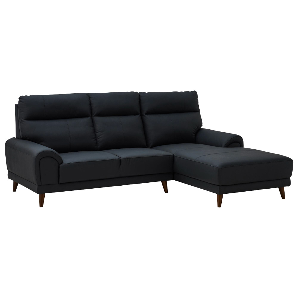左カウチソファ プリバ 本革 ブラック ブラック 454115