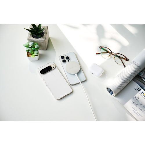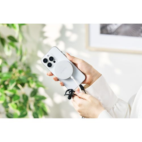 マグネットでスマートフォンの背面にぴったりくっつくため、操作しながらの充電も快適です。