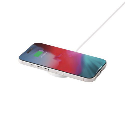 最大25W出力で、ワイヤレス充電がもっと速くなる。Qi2 25W対応のスマートフォンを高速充電できる、マグネット式ワイヤレス充電器です。基板をコネクター側に分散することで、発熱を抑える設計。スマートフォンの背面にぴったりくっつき、操作しながらの充電も快適です。