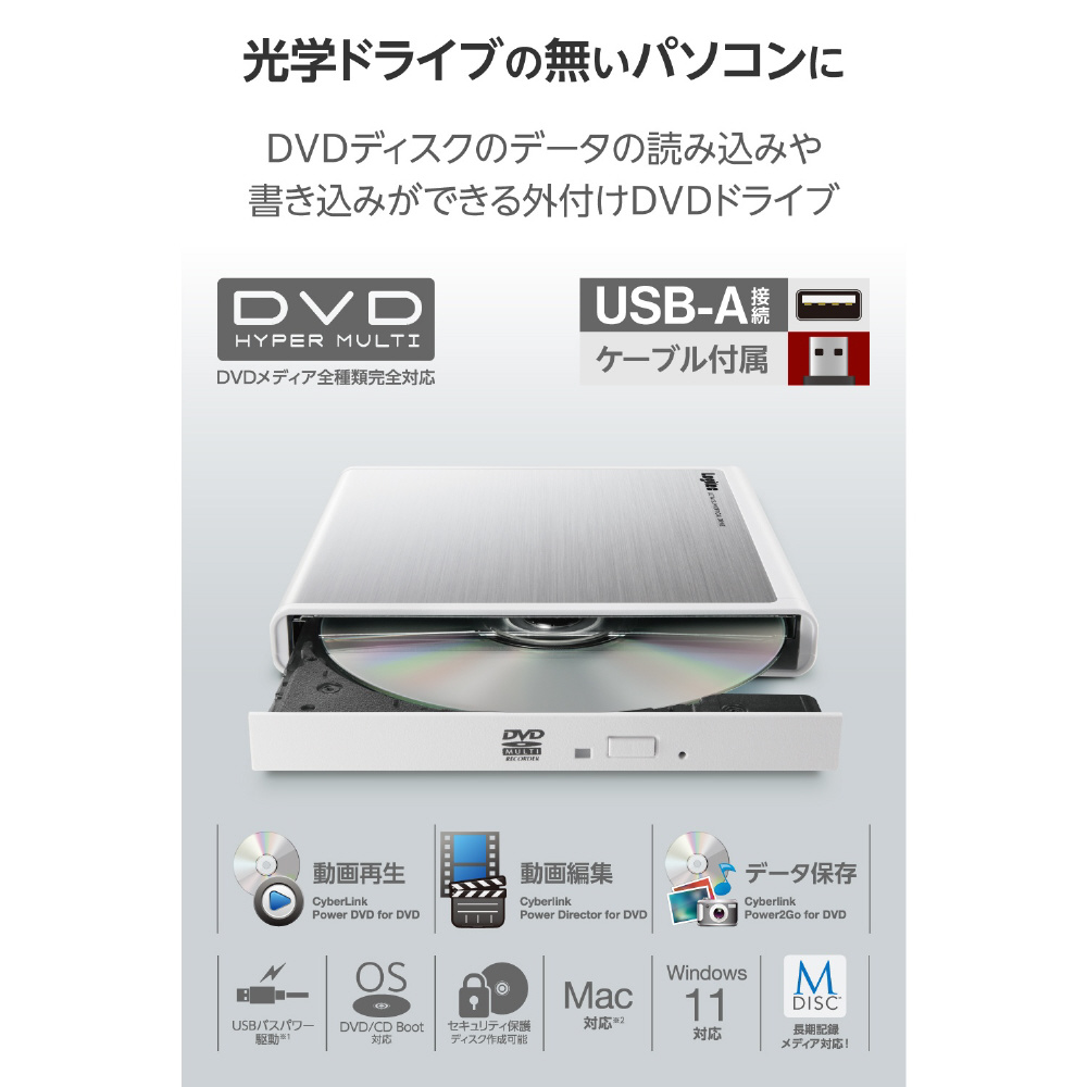 「USB-A ポータブルDVDドライブ(再生/編集/書き込み)」