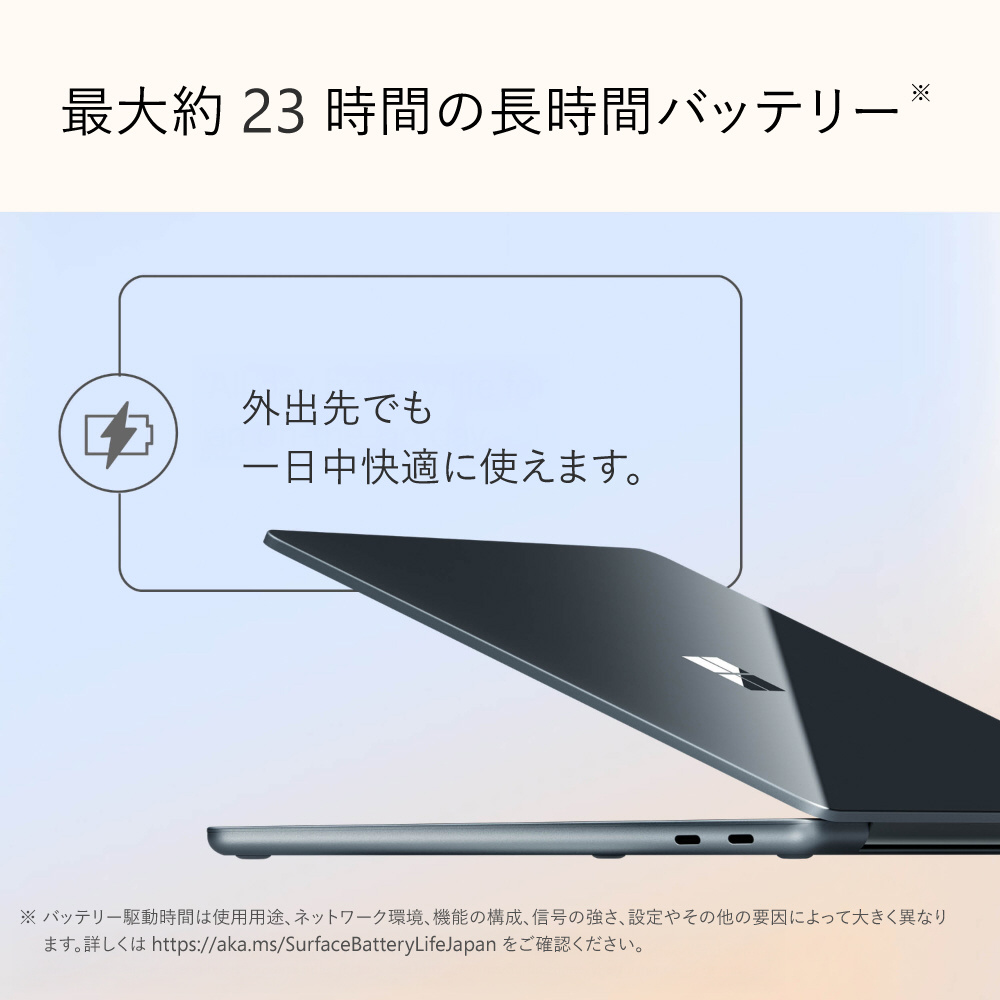 Surface Laptop は、優れたパフォーマンスで、ユーザーの生産性と創造性を向上させます。さまざまなカラーと仕上げから選べるスタイリッシュな超薄型デザイン、鮮やかな 13 インチ タッチスクリーン、一日中持続するバッテリーが特徴です。