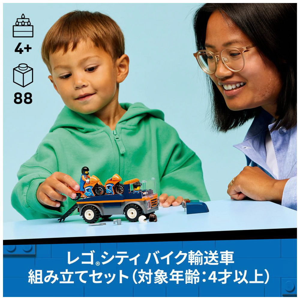 「レゴ(R) シティ バイク輸送車(60491)」は、お子さまの想像力を育てるごっこ遊び入門にぴったりの組み立てプレイセットです。
