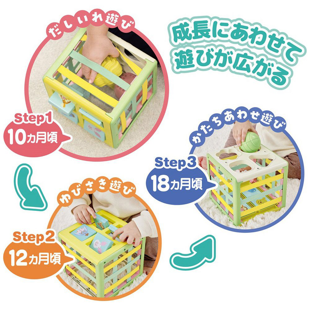 赤ちゃんのやってみたい意欲を育てる知育キューブ。