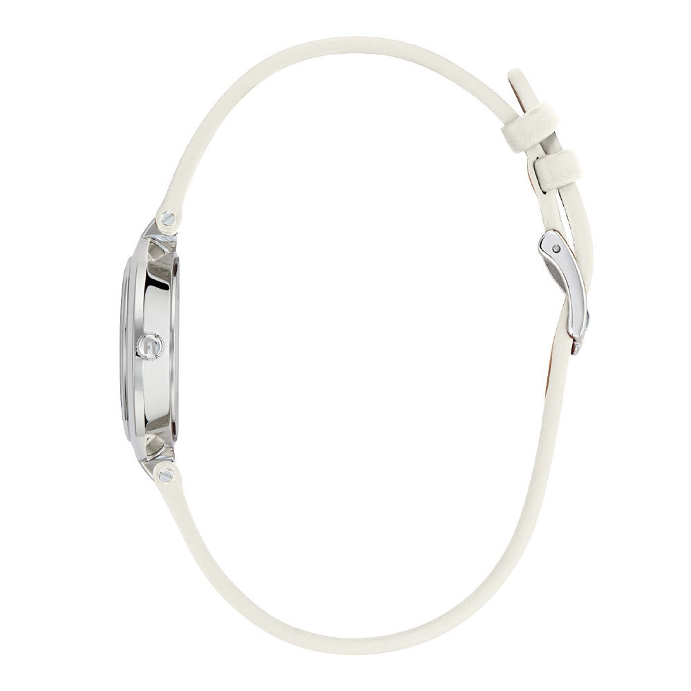 光を受けて美しく輝くサンレイ加工ダイヤルを採用しており、上品なお手元を演出します。