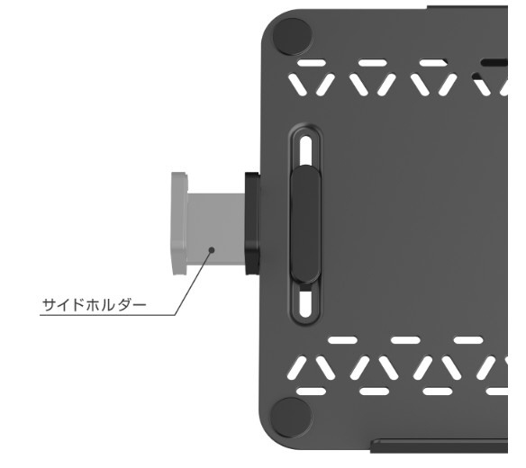 ■サイドホルダーは上下に移動可能、ノートPCのポートの無い位置で固定できます。