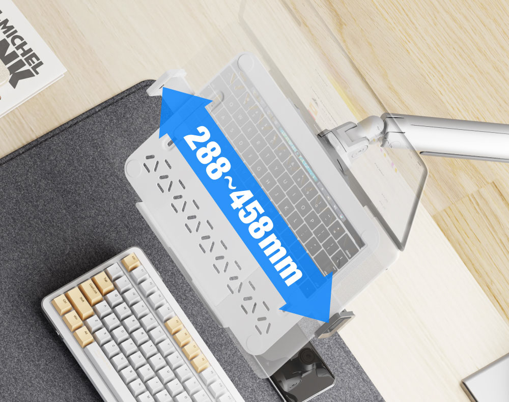 〔モニターアーム対応〕モニターアーム用 ノートPCトレイ [12〜18インチ 横幅288〜458mm] ホワイト GH-NPHB-WH