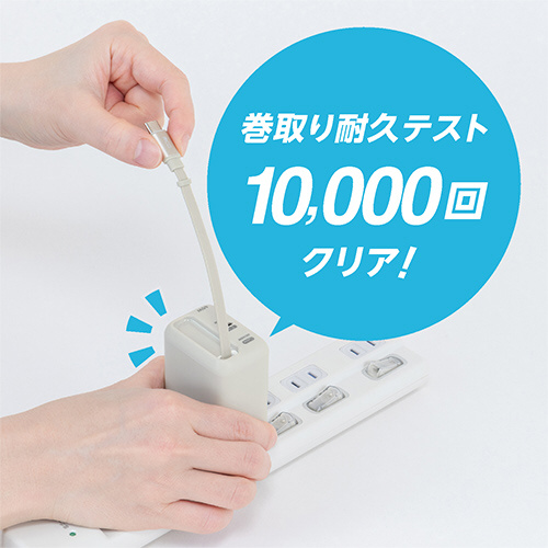 巻取り収納テスト1万回をクリアしたType-Cケーブルを内蔵。