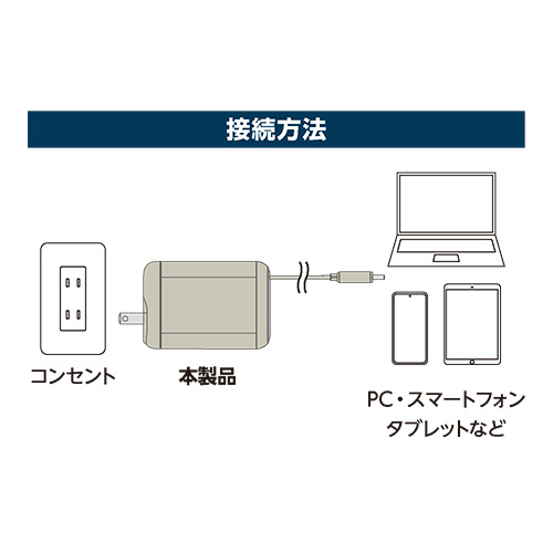 出張や旅行の持ち運び用としてやデスク上のサブアダプタとしても最適です。