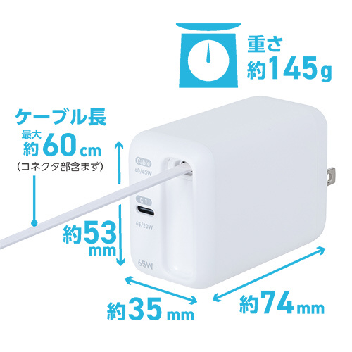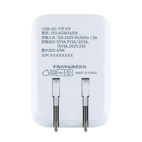 AC⇔USB-C充電器+USB-Cポート ノートパソコン・タブレットPC対応 65W [0.6m /USB Power Delivery対応] ホワイト JYU-ACR0165W