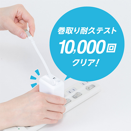 巻取り収納テスト1万回をクリアしたType-Cケーブルを内蔵。