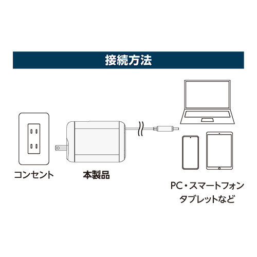 出張や旅行の持ち運び用としてやデスク上のサブアダプタとしても最適です。