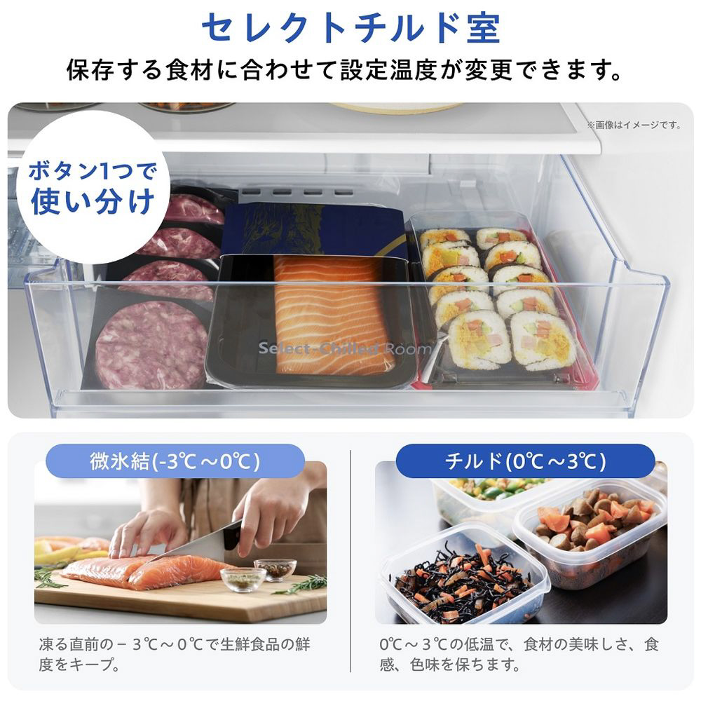 微氷結は-3℃〜0℃、チルドは0℃〜3℃。食材に合わせてボタンひとつで微氷結/チルドを切り替えることができます。