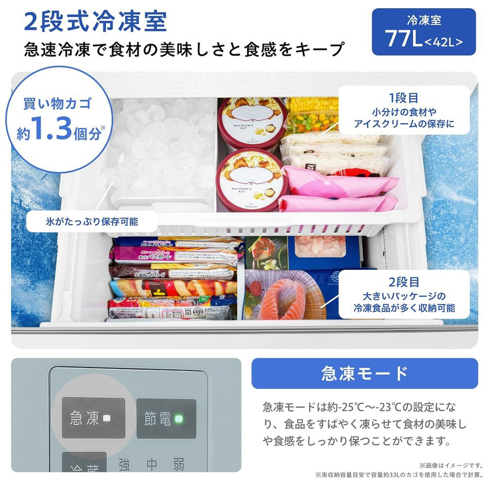 ドアアラーム(冷蔵室・冷凍室)・急速冷凍・アイスシャベル・防音シート