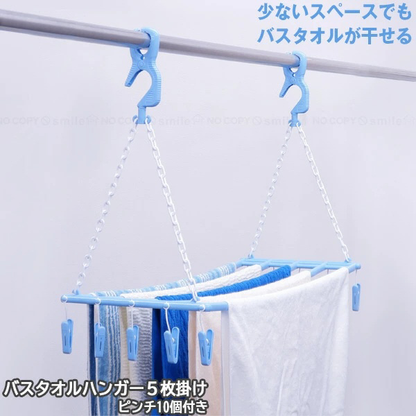バスタオルハンガー5枚掛ピンチ10付(ライトブルー) SBH-05