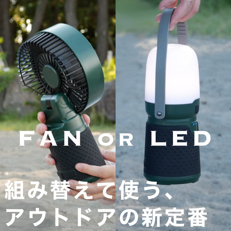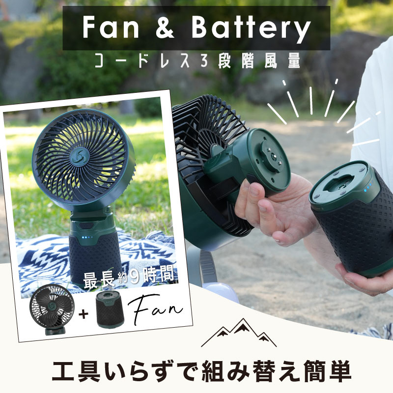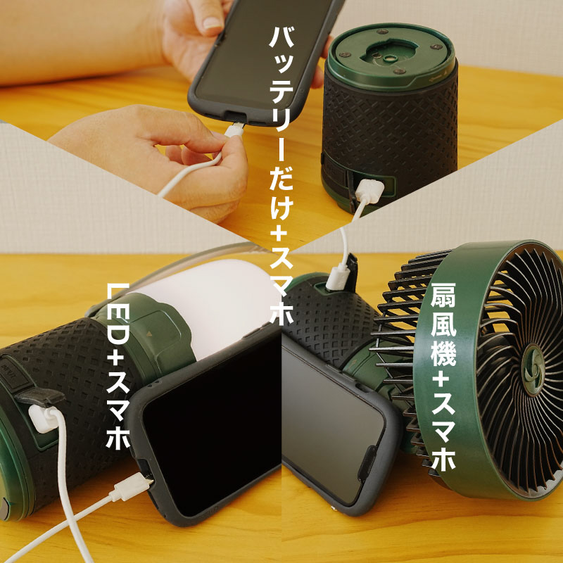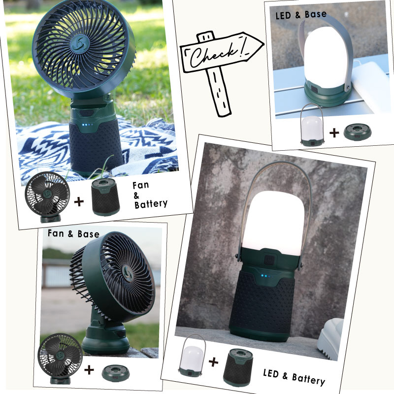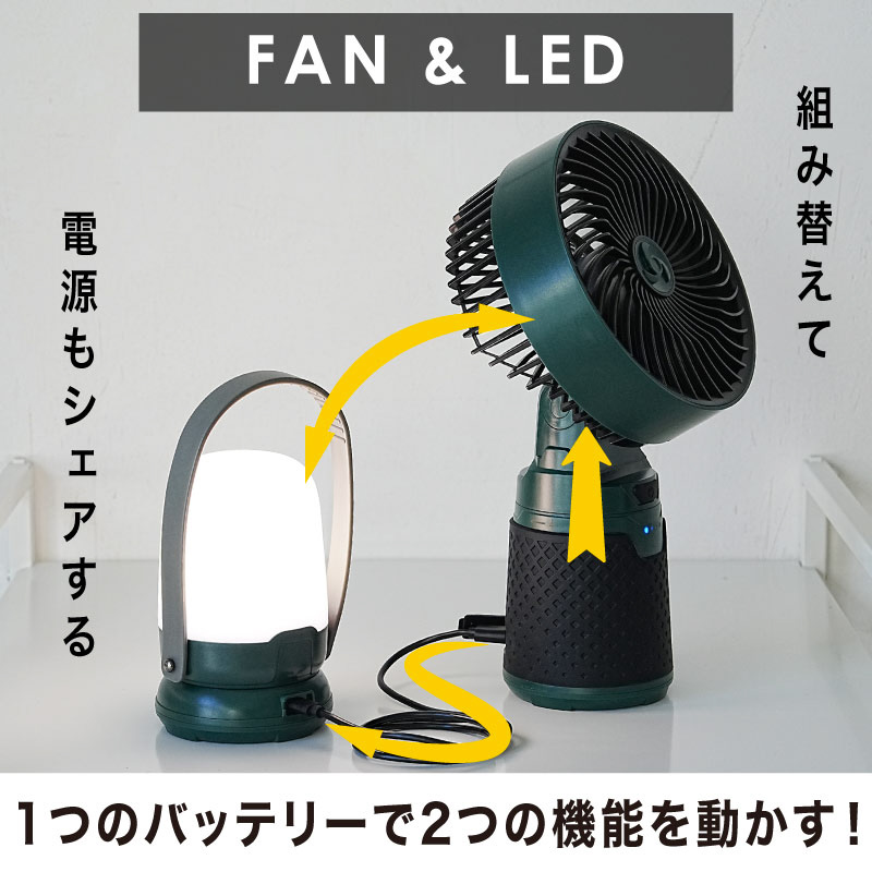 ひとつのバッテリーで、ファンとライトを同時に動かすことも可能。