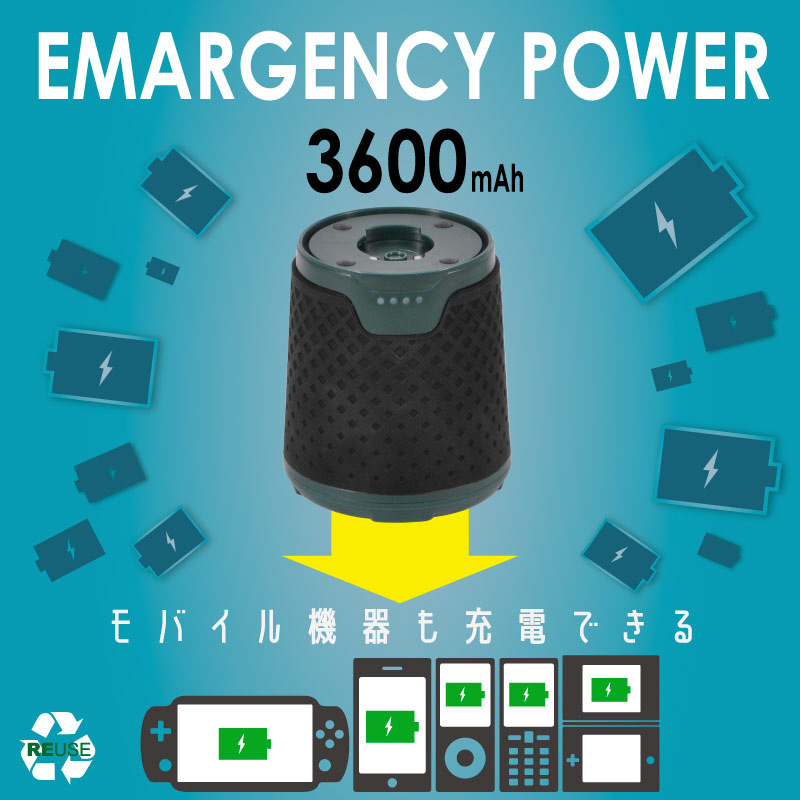 USB充電式だから、モバイルバッテリーやポータブル電源からの給電にも対応。