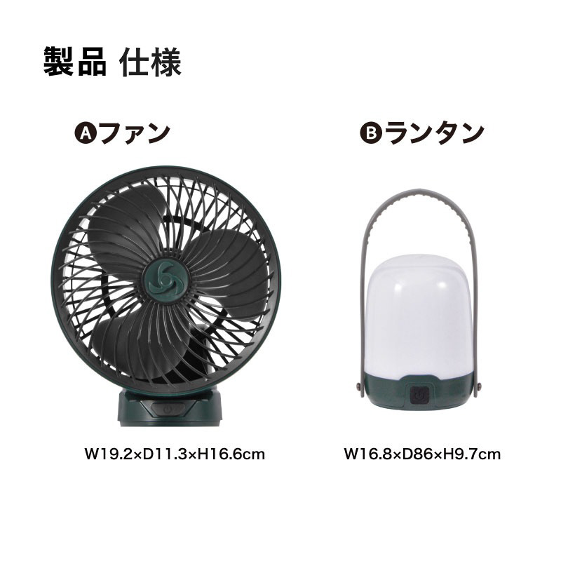 本体サイズ(幅×高さ×奥行)mm ライト[W16.8×D86×H9.7cm]ファン[W19.2×D11.3×H16.6cm]