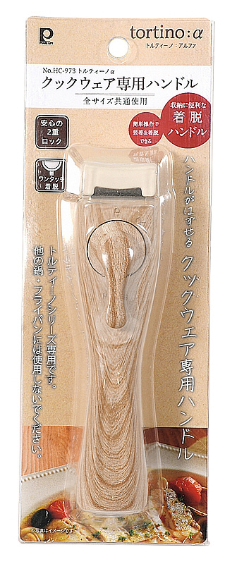 収納に便利な着脱ハンドル。簡単操作で装着&着脱できる、安心の2重ロック。クックウェア専用のハンドルです。各サイズ兼用のため、ぐらつきが生じる場合がありますが、そのまま使用できます。ハンドルを付けたままオーブンに入れないでください。つけ置き洗いや食器洗い乾燥機には使用しないでください。分解しないでください。