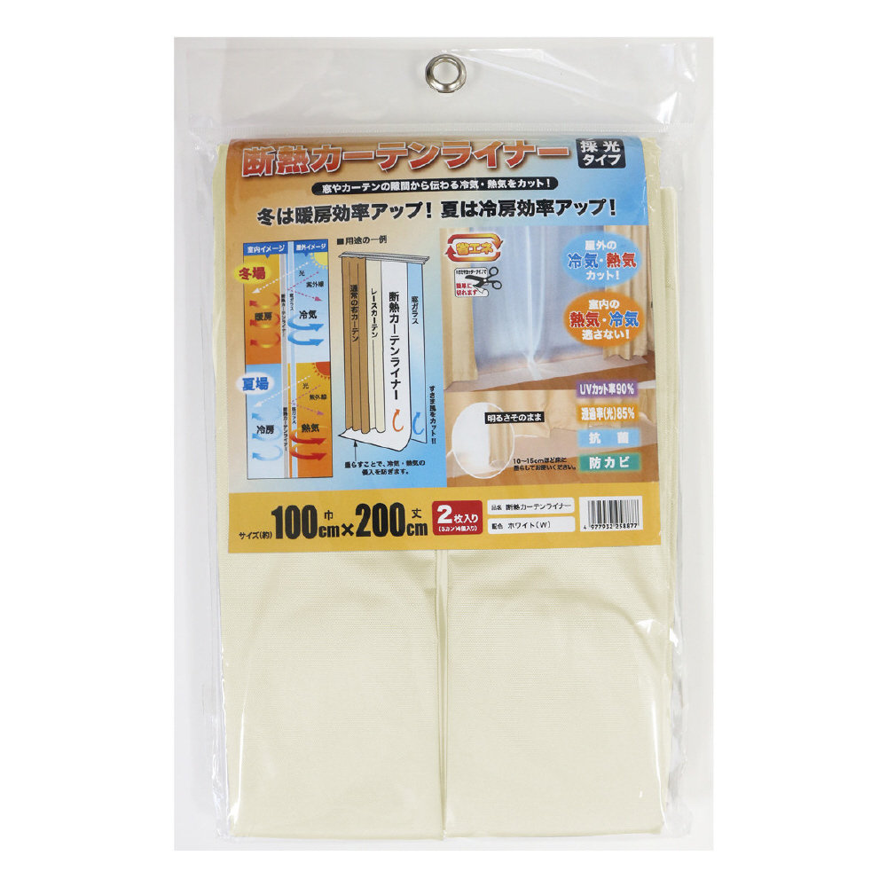 断熱カーテン 断熱カーテンライナー 幅100cm×丈200cm 2枚入 ホワイト
