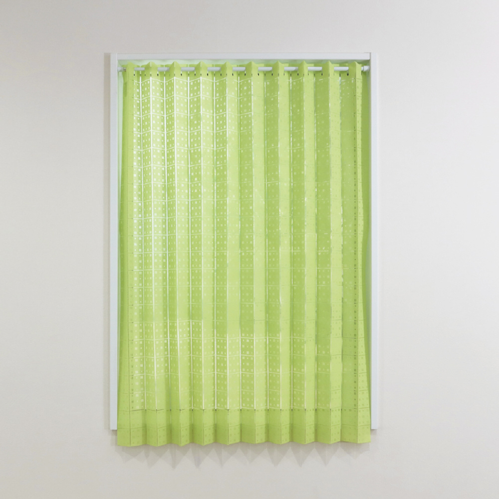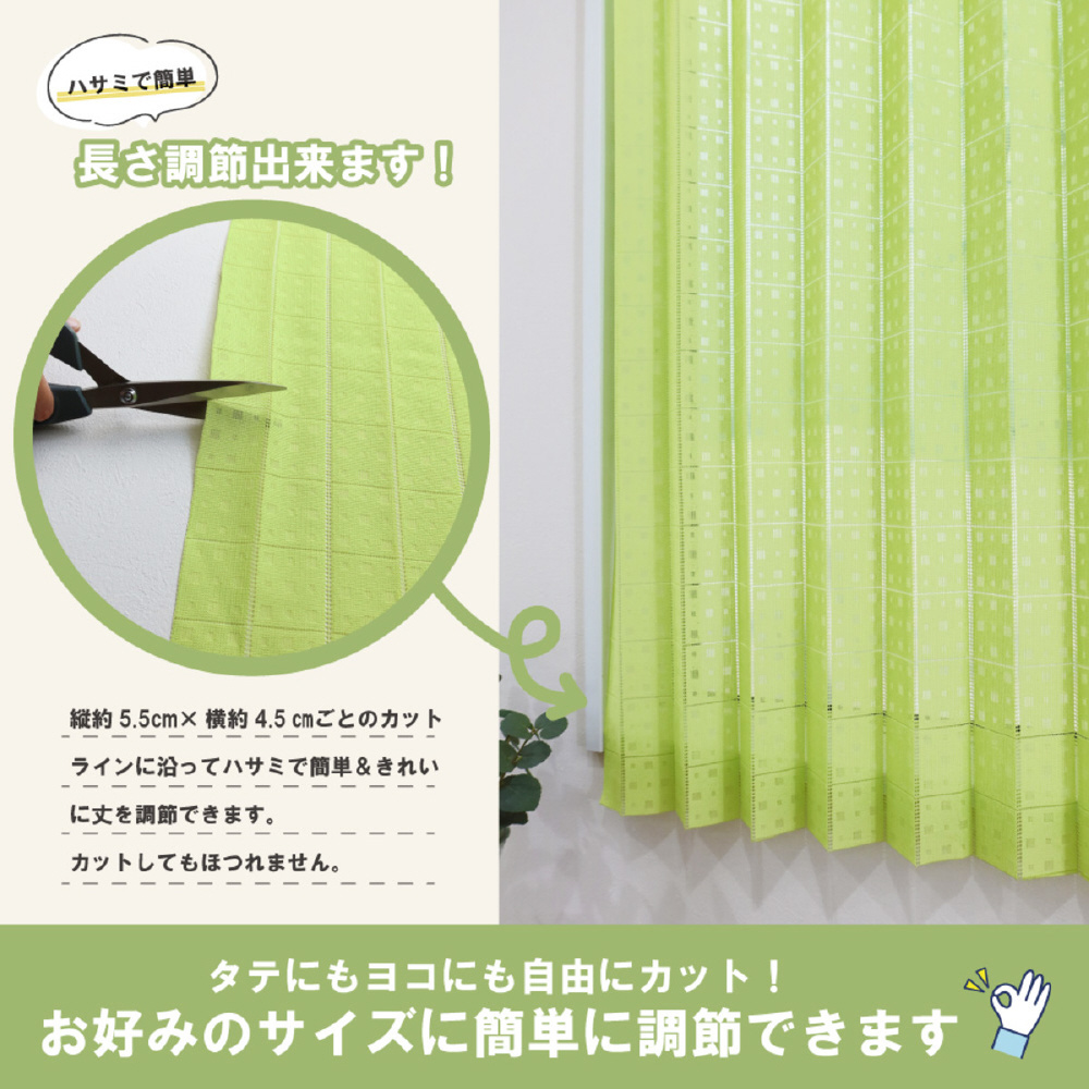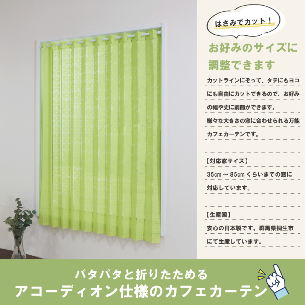カフェカーテン フリーカット 水玉ドット柄 100×115cm 小窓 グリーン