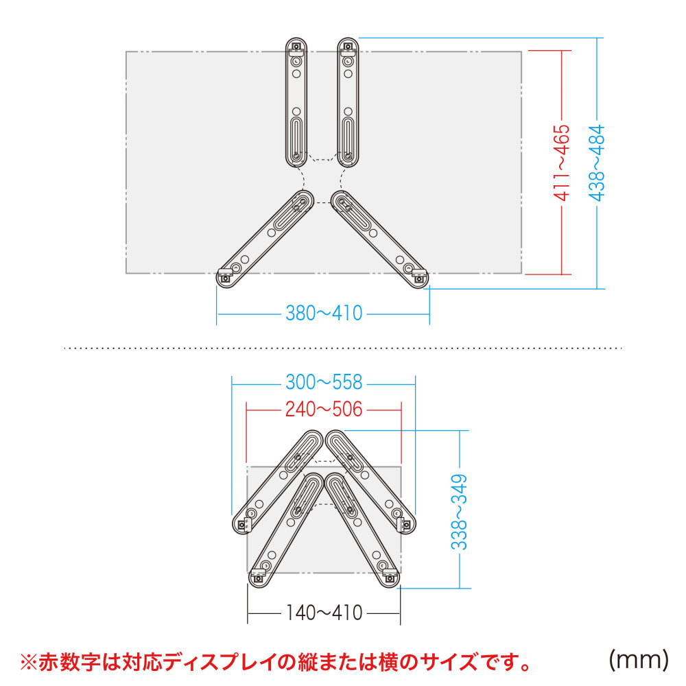 仕様2 [セット内容]アーム×4、フック×4、ストッパー×4、カバー×4、ナット×8、六角レンチ(4mm)、スパナ(7mm+8mm)、ノブボルト(M5×45mm)×4、ボルト(M5×80mm)×4、ボルト(M5×60mm)×4、ボルト(M5×40mm)×4、ボルト(M4×12mm)×4、組立説明書