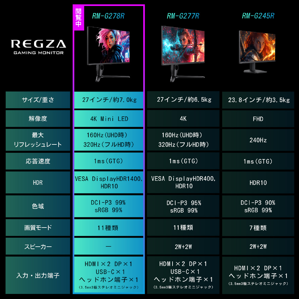 RM-G278R USB-C接続 ゲーミングモニター [27型 /4K(3840×2160) /ワイド /320Hz]