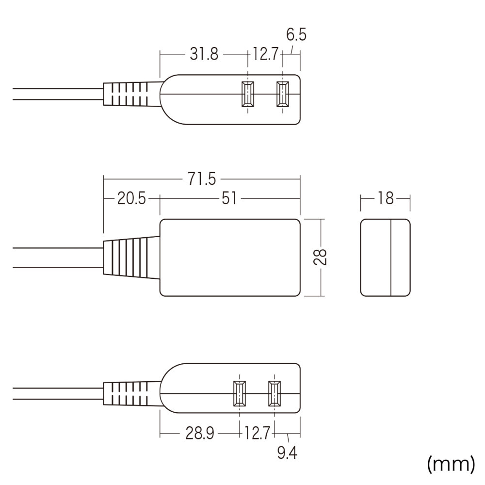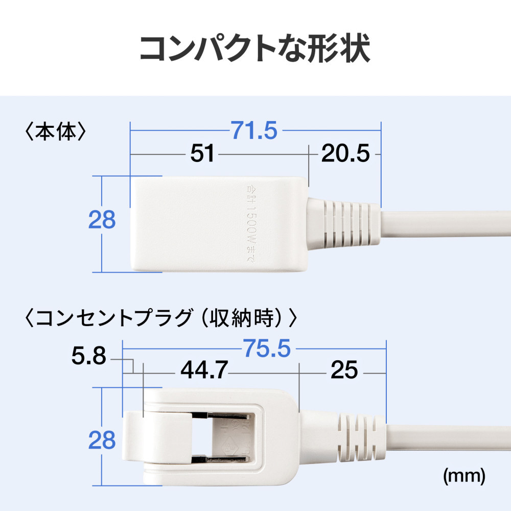 ●ケーブル長は10cmと短く、持ち運びに便利なモバイル用タップです。