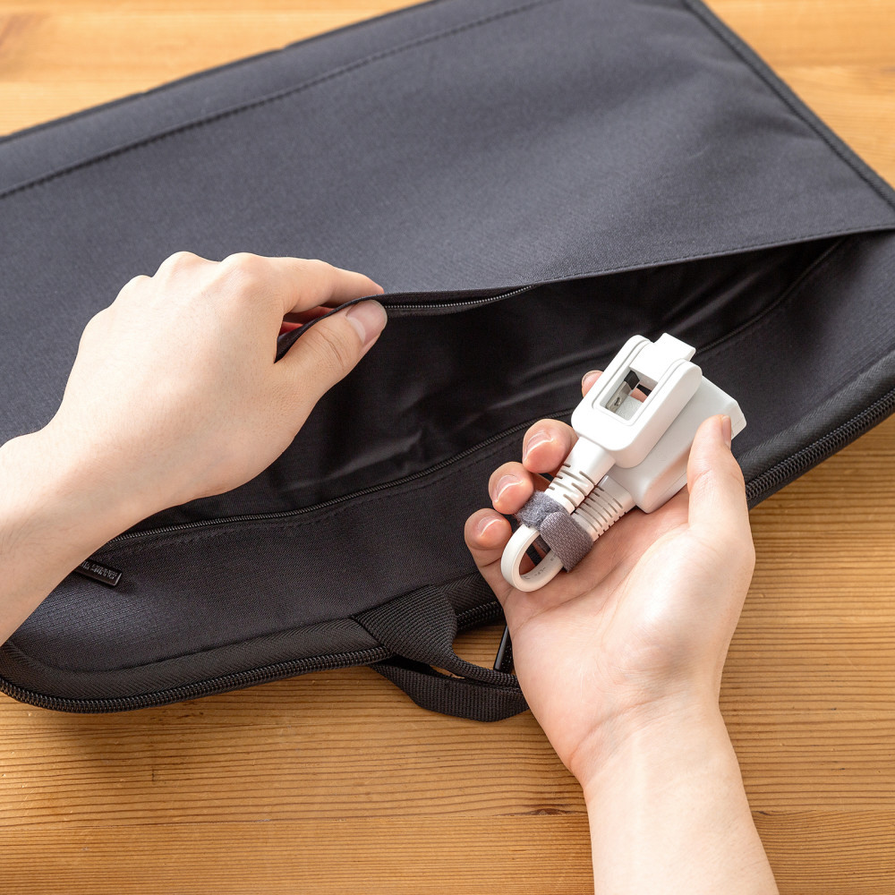 ●面ファスナーのケーブルタイ付きで、 出張や旅行などにも使用できるように、ケーブルがばらつかず、コンパクトに持ち歩くことができます。