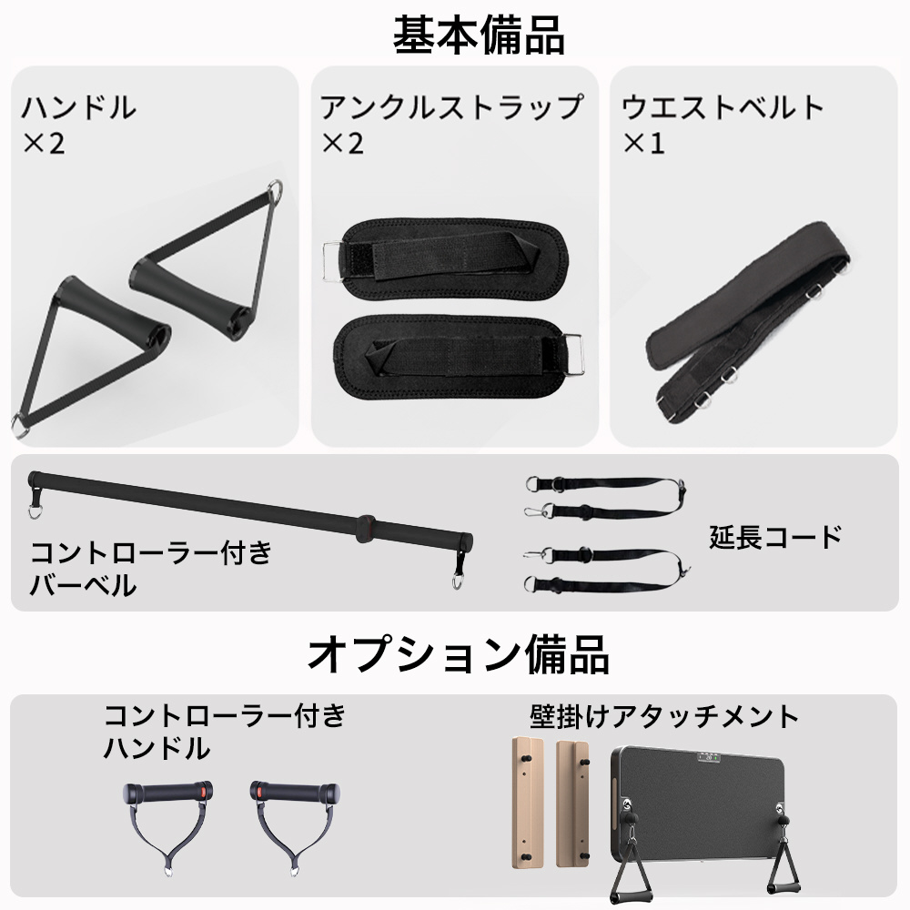 仕様1 付属品:ハンドル、コントローラー付きバーベル、ウェストベルト、アンクルストラップ、延長ケーブル