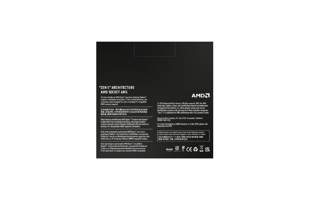 〔CPU〕AMD Ryzen 5 9500F W/Wraith Stealth Cooler BOX (6C/12T3.8Ghz65W) 100-100001406BOX [AMD Ryzen 5 /Socket AM5 /グラフィックス非搭載]