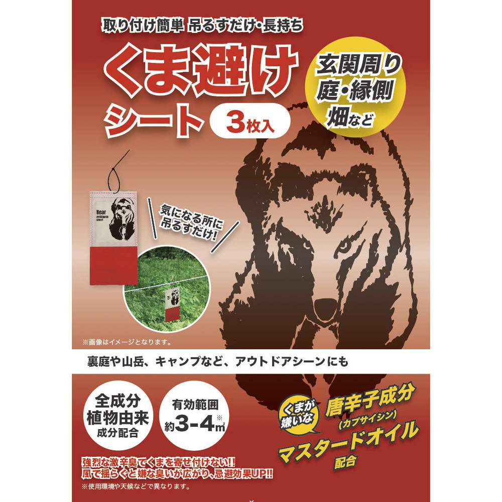 熊が苦手なカプサイシン、マスタードオイル配合、激辛臭で熊との遭遇をさける!熊が来てほしくないエリアに吊るすだけ!