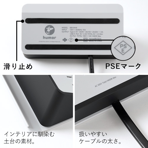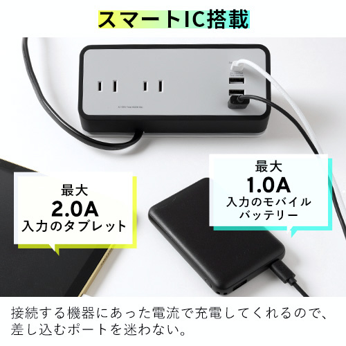電源タップ [AC 2Px2 / USB-Ax3 / USB-Cx1] タブレットPC / スマホスタンド ホワイト PXAUTCW-O [1.5m /2個口 /スイッチ無 /4ポート]