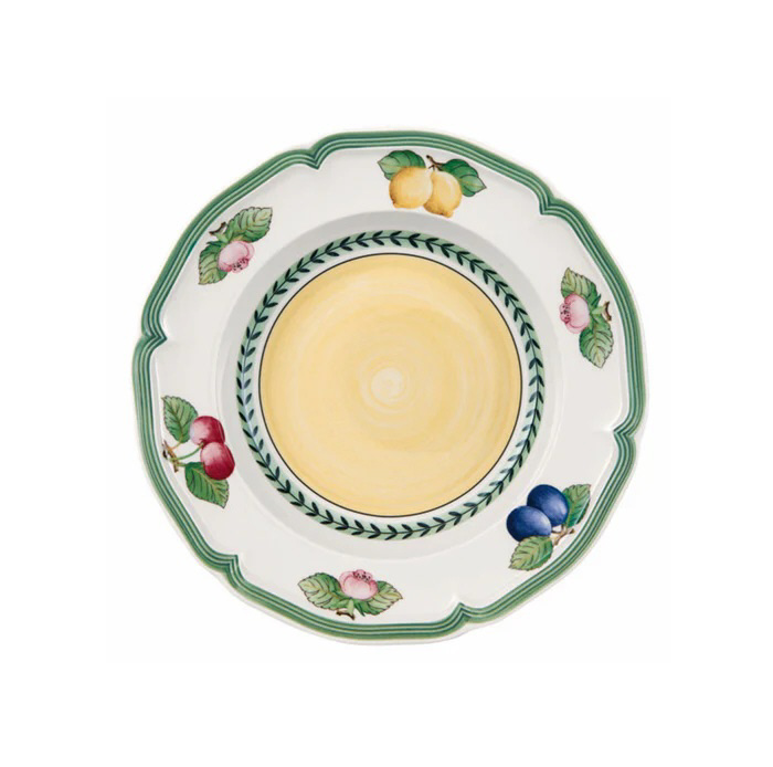 伝統的なカントリーハウスの庭の風景を温かみのある色調で取り入れており、まるで食卓に壮大な果樹園を創り出すかのよう。