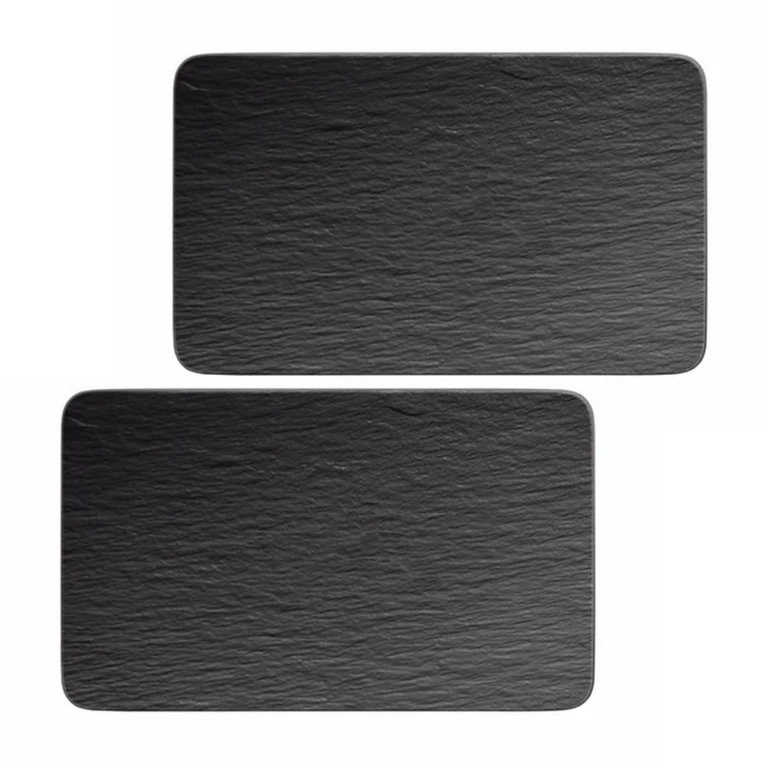 スレートのような見た目がクールな一皿。洋食器は丸くなくてはならないという概念を覆した一枚!「ロック」はあらゆる角度から型破りなアイディアを実現しています。長方形でフラットな一枚は、オードブルやおつまみ、焼き魚などのメインディッシュ、デザートまで、料理を引き立ておいしそうに見せてくれる優れものです。贈り物としても人気です。