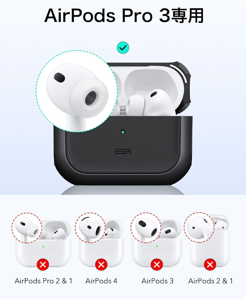 本ケースカバーはAirPods Pro 3(2025年モデル)のみ対応。イヤホン本体と充電ケースは含まれていません。