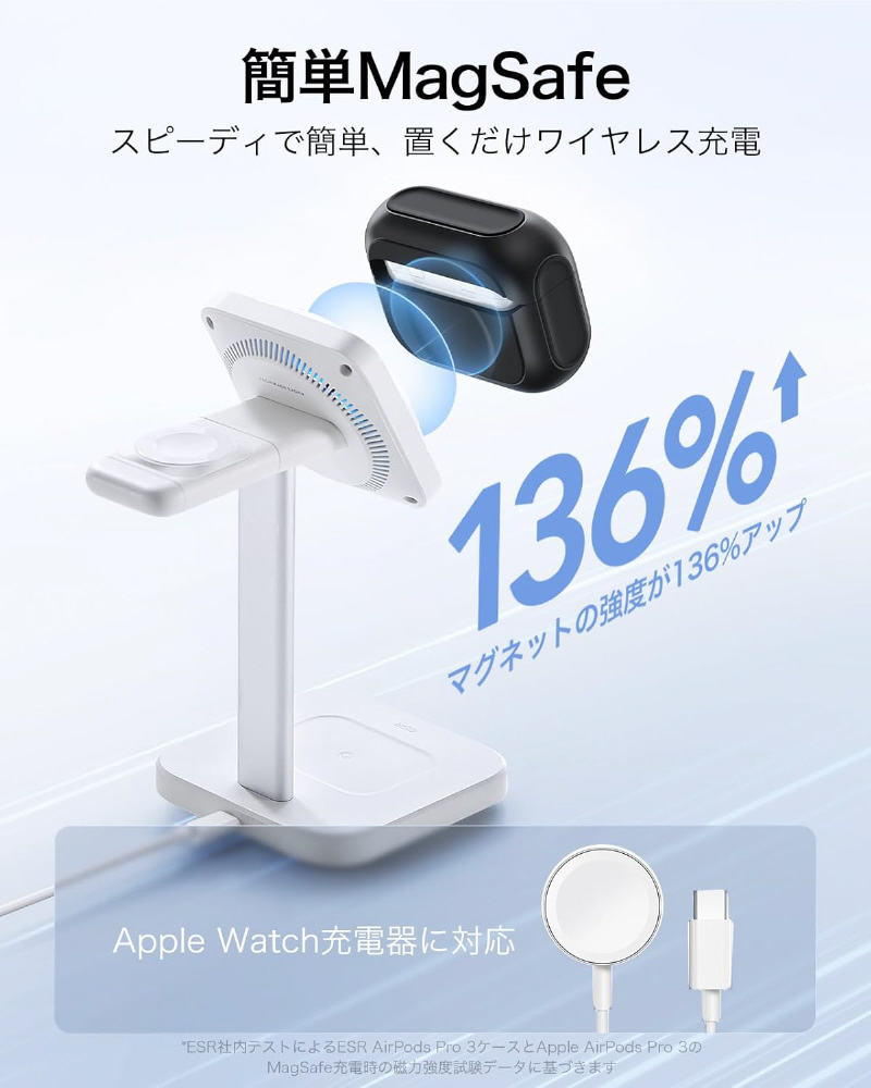 ケース背面に強力な磁石を内蔵し、MagSafe充電器へのしっかりとした固定を実現。ワンタップでのワイヤレス充電を快適に楽しめます。