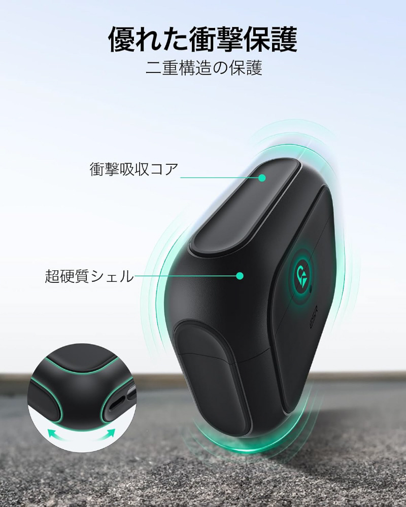 超硬質シェルと柔軟で衝撃吸収性に優れたコアの二重構造が、充電ケースを衝撃からしっかり守り、新品のような美しさを保ちます。