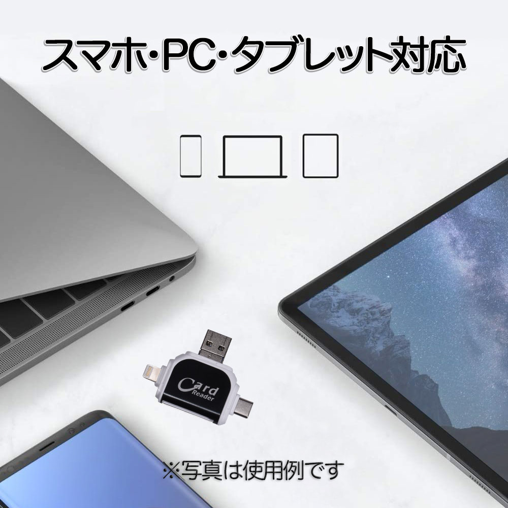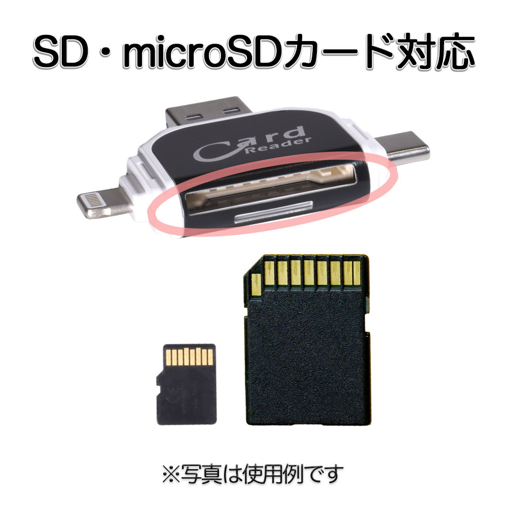 GLD1964MJ42A SDカードリーダー 4 in 1 MicroSDカード Type-C/USB 3.0 MicroUSB Lightning