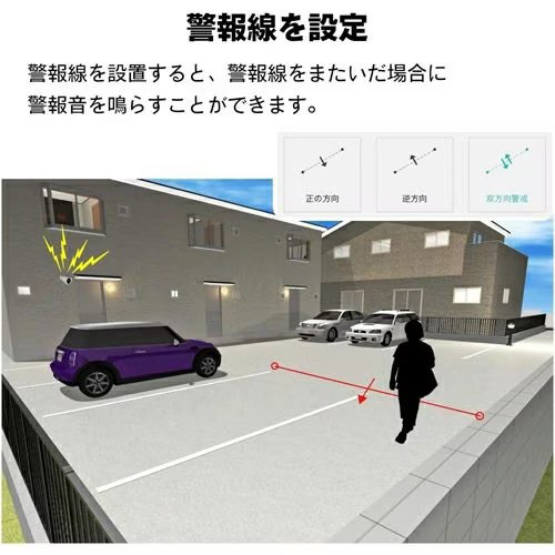 警戒線を設定すると、その線をまたいだ場合に警報音を鳴らすことができます。