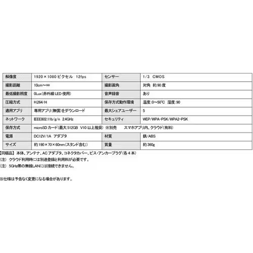 1080Pフルハイビジョンと高画質で赤外線ナイトビジョン搭載なので夜間も心配ありません。