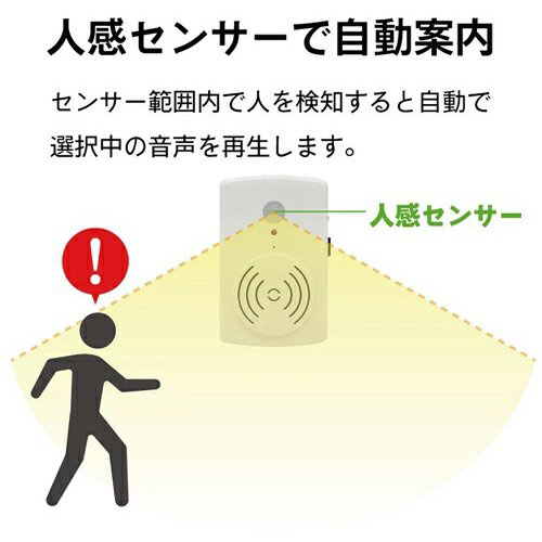 人感センサーで人を検知すると警告灯点滅と共に音声ガイドを再生する音声案内機器です。