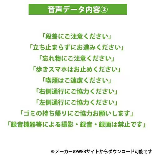オリジナルの音声の設定や、メーカーページから無料のオプション音声もダウンロード可能です。
