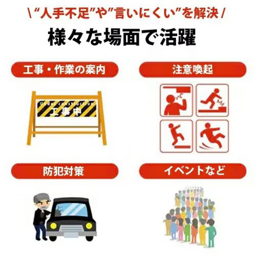 人感センサーで人を検知すると警告灯点滅と共に音声ガイドを再生する音声案内機器です。