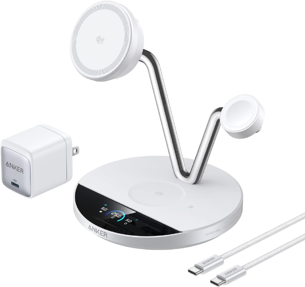 3-in-1充電器 Anker Prime Wireless Charging Station (3-in-1 MagGo AirCool Dock Stand) ホワイト B25X7J21 [USB Power Delivery対応 /ワイヤレスのみ]