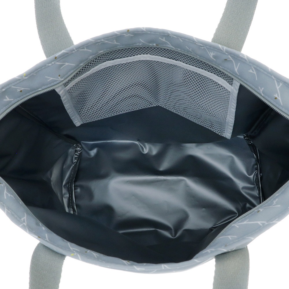 【素材・材質】外生地/ポリエステル、中生地/発砲ポリエチレン、ポリプロピレン、内生地/PEVA、持ち手・紐/ポリエステル、ネーム/綿