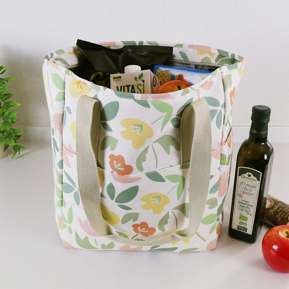 食材の買い物や花見や運動会などの行楽のお弁当入れに最適なサイズの保冷バッグ。ジムやヨガなどのスポーツ時のバッグとしてもおすすめです。