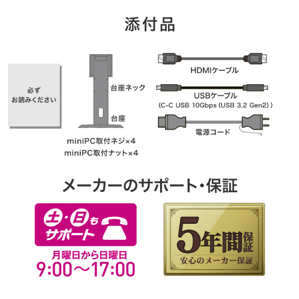 取付用のネジ等も標準添付しているので、すぐに取り付けることが可能です。