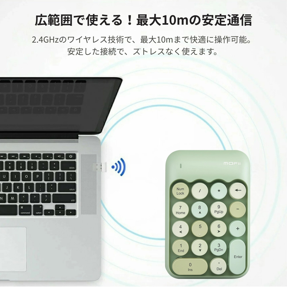 2.4GHzワイヤレス接続で転送距離6〜10m。安定した通信で、ビジネスもゲームも快適!