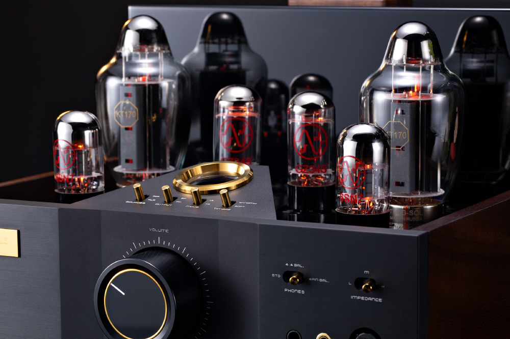 ドライバーチューブは信号電圧を増幅し、アンプ回路全体が極めてリニアな状態で動作できるように設計されています。KT170出力管はシングルエンド純A級動作により、音楽信号を分割することなく完全な増幅出力を生み出します。